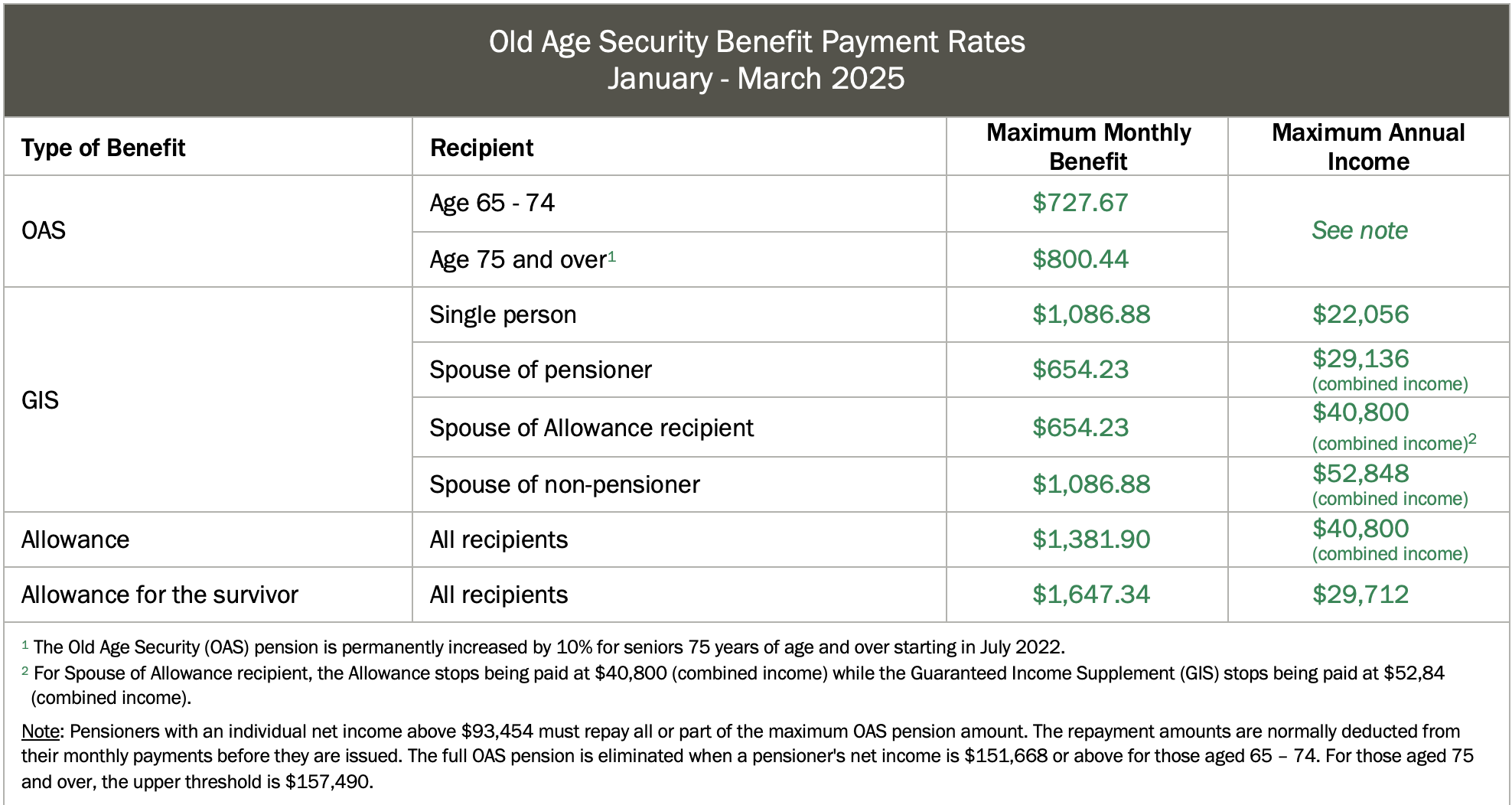 2025 Government Benefits & Limits – A Quick Reference